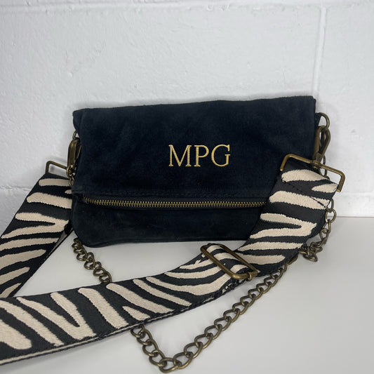 Bolso doble cadena en piel de ante personalizado - color negro