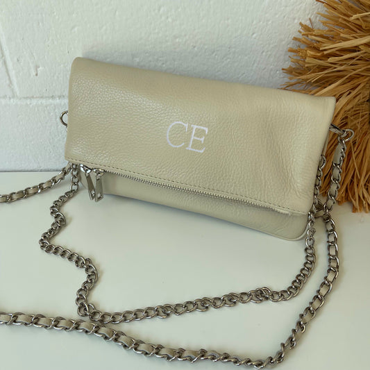 Bolso de piel doble cadena personalizado - Color beige