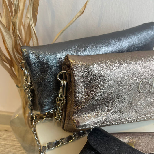 Bolso doble cadena brillante - color PLATA