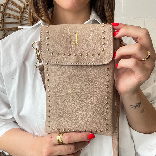 Bolso de piel personalizado doble cadena dorada - color taupe