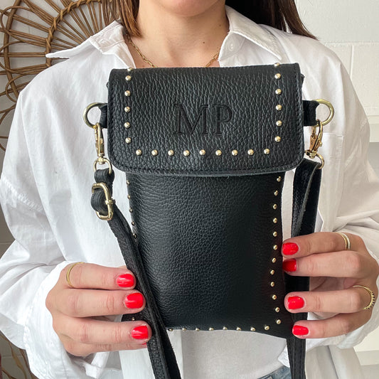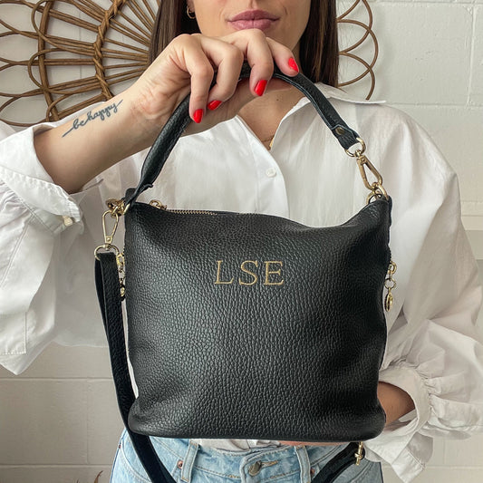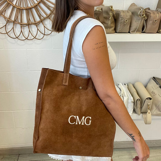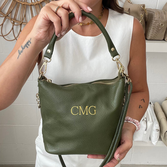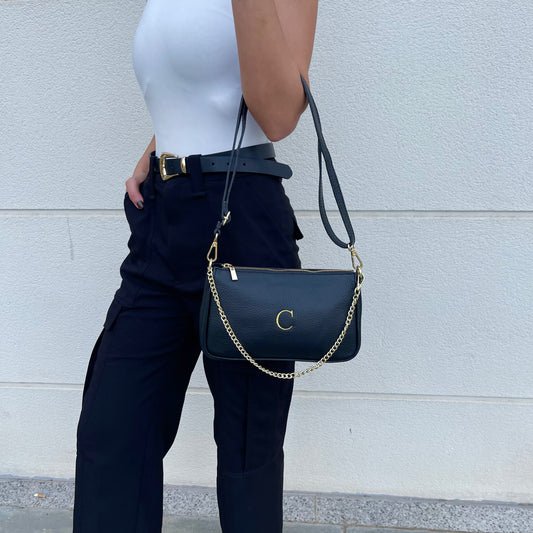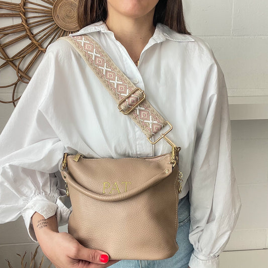 Bolso de piel personalizado doble cadena dorada - color taupe
