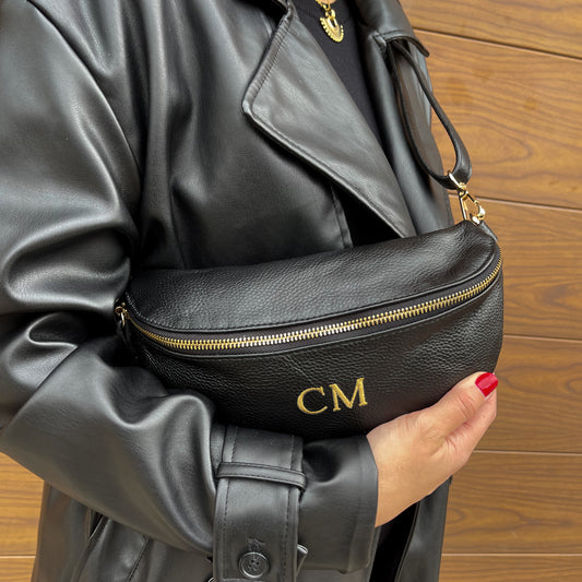 Riñonera mediana de piel personalizada - Color negro