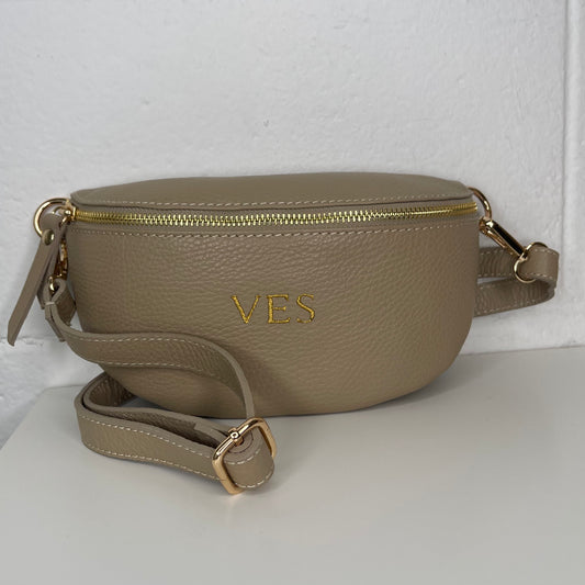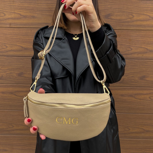 Riñonera mediana de piel personalizada - Color beige